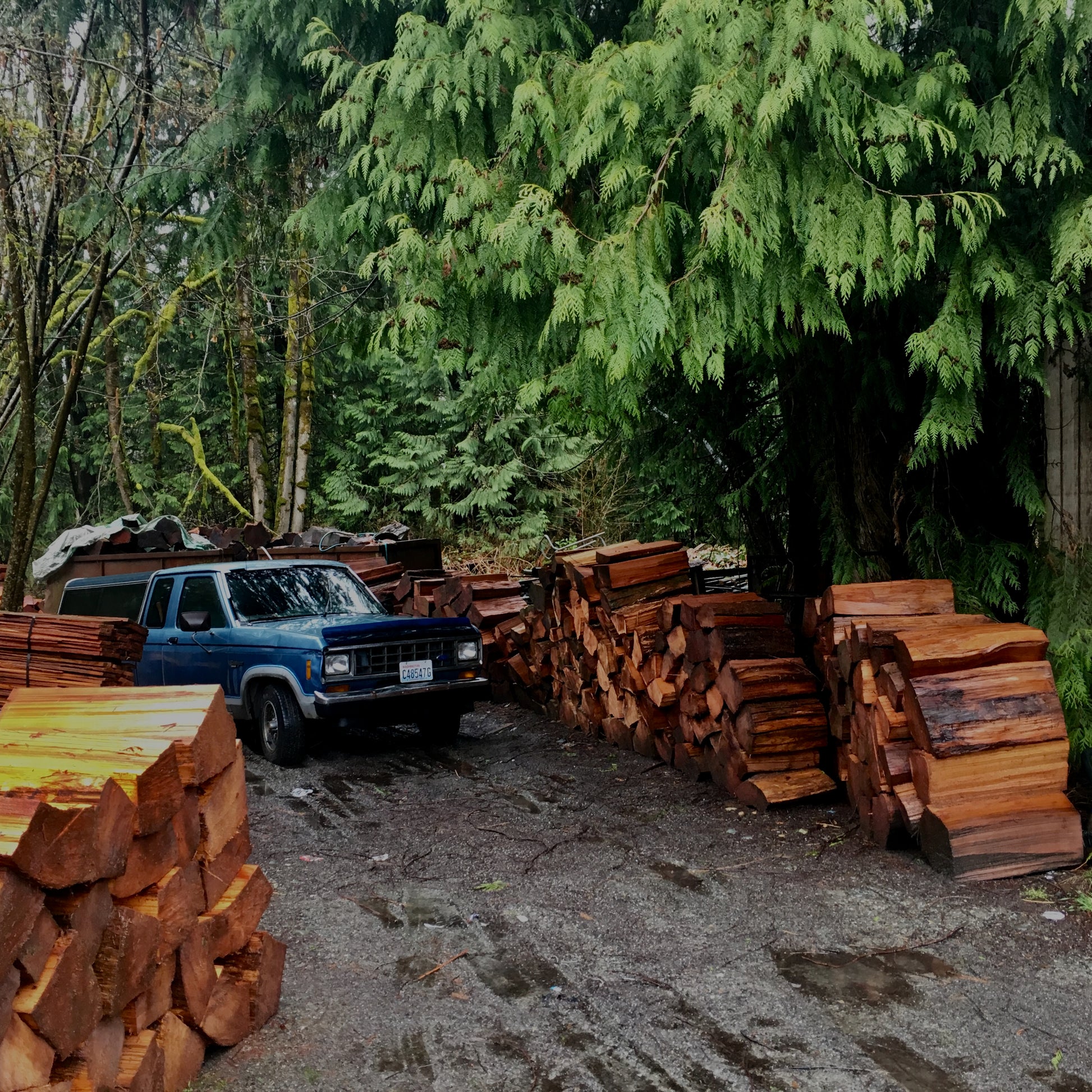 Everything smelled like cedar and rain. The stacked wood, wet ground, and old truck tucked beneath the trees felt like a perfect snapshot of everyday life in the Pacific Northwest - simple, quiet, and honest.